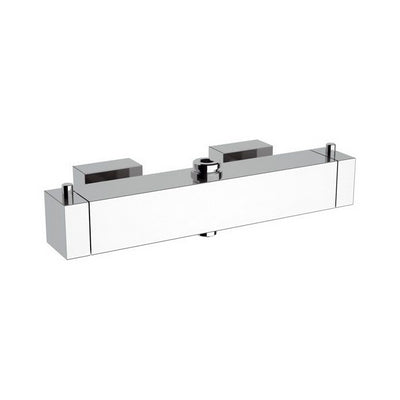 Termostatico quadro doppia uscita, inferiore 1/2", superiore 3/4" con deviatore integrato nella maniglia. Cordpo freddo.