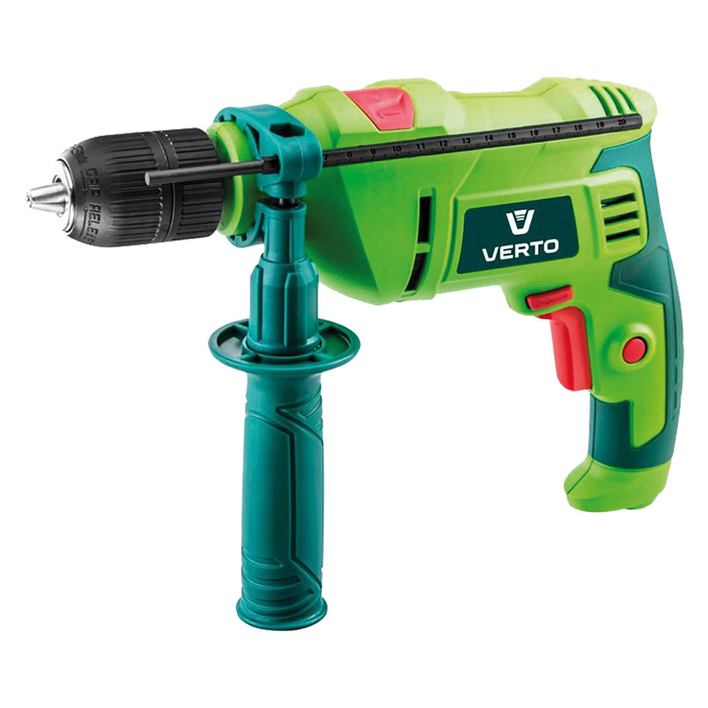 Regolazione della velocità e blocco continuo, maniglia ergonomica per maggior comfort e sicurezza sul lavoro. Maniglia laterale aggiuntiva, limitatore di profondità di foratura. Funzione di perforazione e perforazione con impatto. Mandrino autoserrante 13 mm. Tensione di alimentazione: 230V-50Hz. Consegnato in valigetta, con punte da muro Ø 6-8 mm e 60 tasselli completi (30 pezzi Ø 6 mm + 30 pezzi Ø 8 mm).