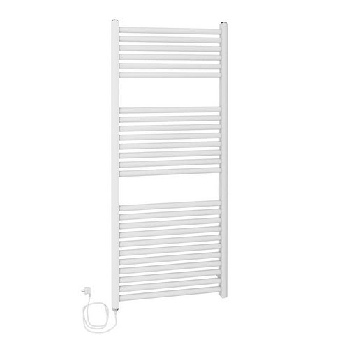Termoarredo elettrico con resistenza termolimitata, non regolabile. Colore bianco, con 25 tubi di resa, compreso di kit per il montaggio a muro.