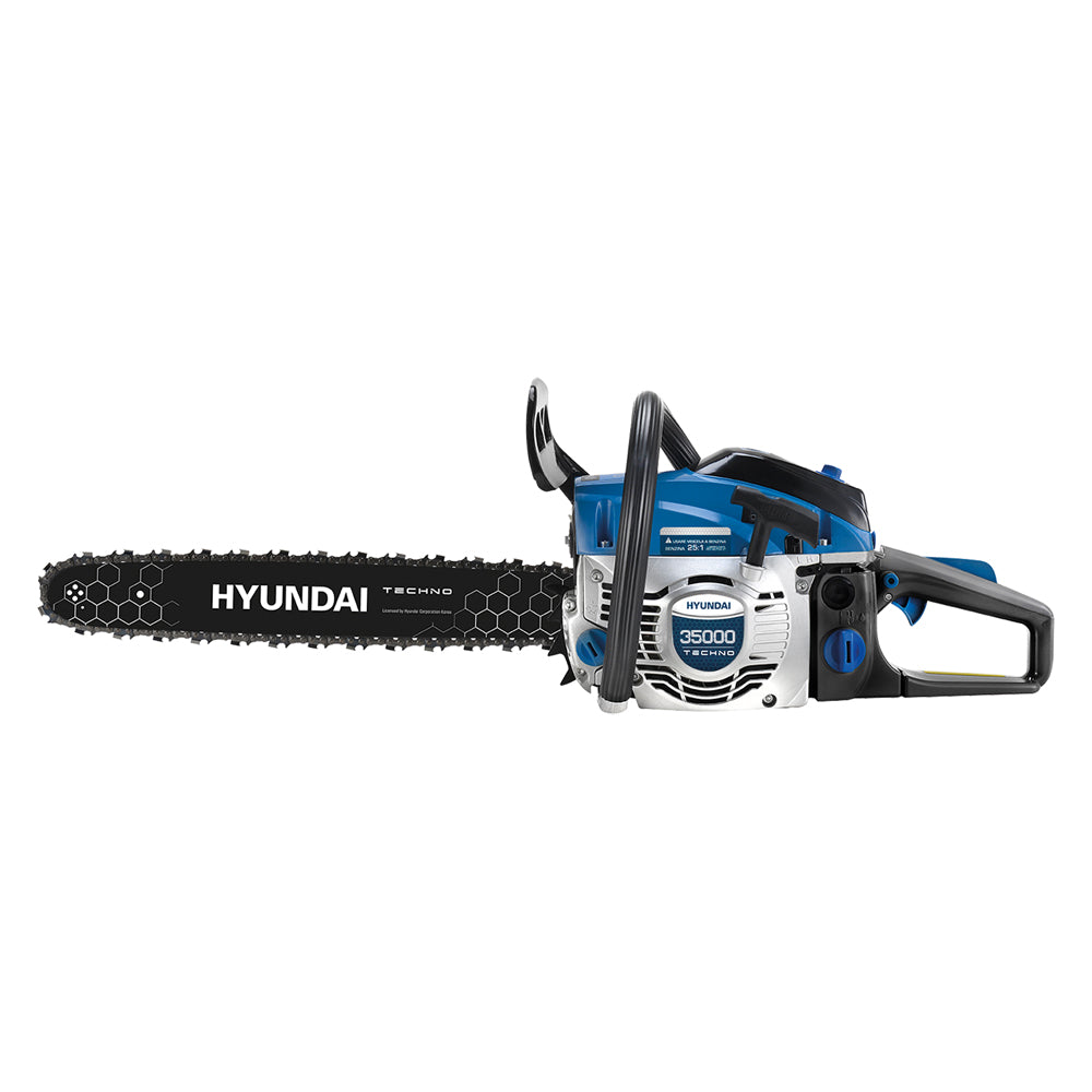 Motore 2 tempi, avviamento manuale, capacità serbatoio 0,55 litri. Giri 10,500/min., scocca in plastica/alluminio, capacità serbatoio olio catena 0,26 litri. Carburatore Hyundai, lunghezza barra di taglio cm. 45, Ø di taglio max. mm 400. Sistema antivibrazioni, soft grip, sistema di lubrificazione, freno catena, easy start (sensibile riduzione dei contraccolpi in accensione, avvio efficiente dal punto di vista energetico), filtro in nylon, facile riaccensione dopo lunghe pause. Potenza 52,0 - Kw 2,0. Euro 5. Peso 6,2 kg.
