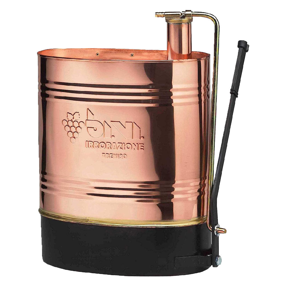 Serbatoio in rame e base in metallo verniciato. Corpo pompante in rame, stantuffo in materiale anticorrosivo. Indicata per pesticidi, erbicidi, antiparassitari. Valvola in acciaio inox 11 mm. Pressione di lavoro costante 3 BAR, pressione massima 6 BAR. Completa di tubo in gomma da 1,2 metri, cinghie regolabili. Leva sinistra.