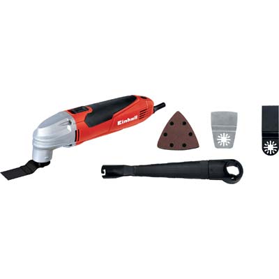 Taglia, leviga e raschia, ideale per una molteplicità di impieghi. Oscillazioni regolabili da 22.000-44.000 al minuto. Sistema di estrazione della polvere in modalità levigatura. In dotazione: 1 carta abrasiva, 1 platorello per levigatura, 1 raschietto, 1 lama per legno, adattatore per aspirazione e chiave a brugola. Peso: Kg. 1,65.