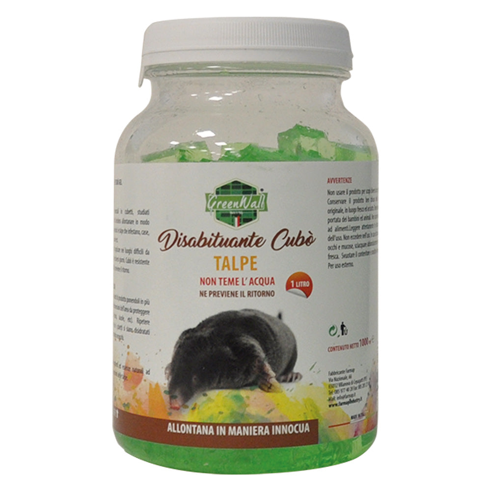 Gel a cubetti studiati appositamente per chi desidera allontanare in modo naturale, talpe e nutrie da giardini ed orti. Assicura lunga durata del prodotto, resistendo ad acqua e umidità . Il prodotto è innocuo e non utilizza gas propellenti. Adatto particolarmente a terreni umidi ed indicato in luoghi dove si irriga (orto e tappeto erboso). Modalità d'uso: inserire 15 o più cubetti di prodotto all’interno delle gallerie e relativi ingressi. Per prati e orti, distribuire 20 cubetti di prodotto per mq. In barattolo plastico.