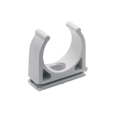 Fissatubi polimero antiurto grigio RAL 7035.Costruito con materiale autoestinguente, classe HB secondo morma U.L. 94.
