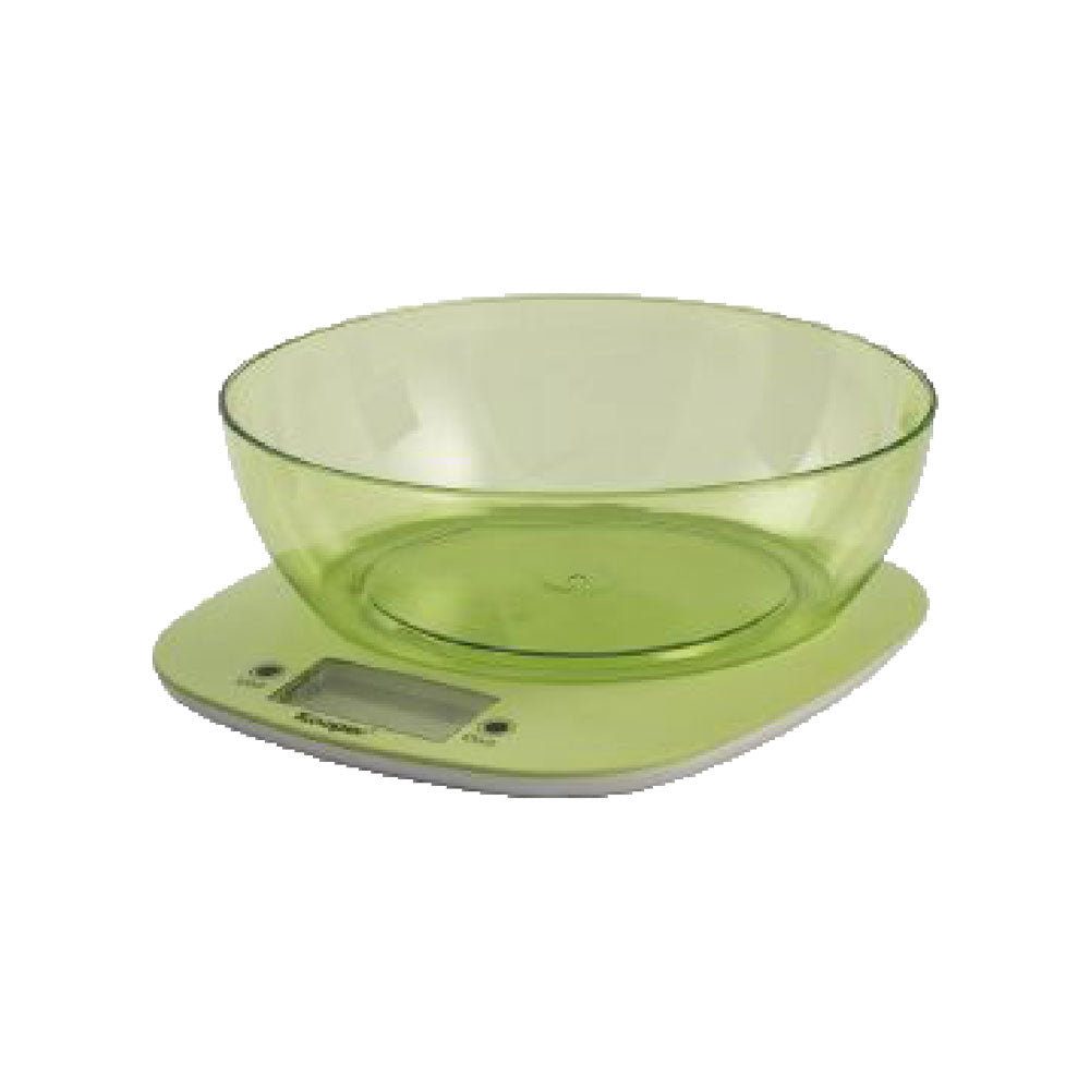 Pesa alimenti solidi e liquidi. Ciotola estraibile e lavabile, dotata di sensore di misurazione. Con funzione tara, sensore touch, pulsante di accensione ON/OFF. Spegnimento automatico, display LED, piedini antiscivolo. Unità di misura intercambiabili: g/Kg/Ib/oz. Precisione 1 g. Dimensioni: 20x24xh. 8,5 cm. Funziona con 2 batterie AAA incluse.
