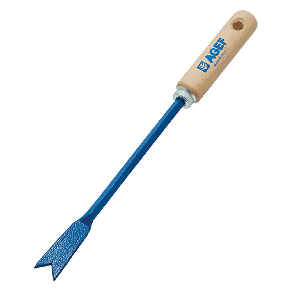 In metallo bucciato e verniciato. Indicato per la cura dell'orto e del giardino. Dimensione totale 2,4x24x38 cm. Fornito con manico da cm. 13,8.