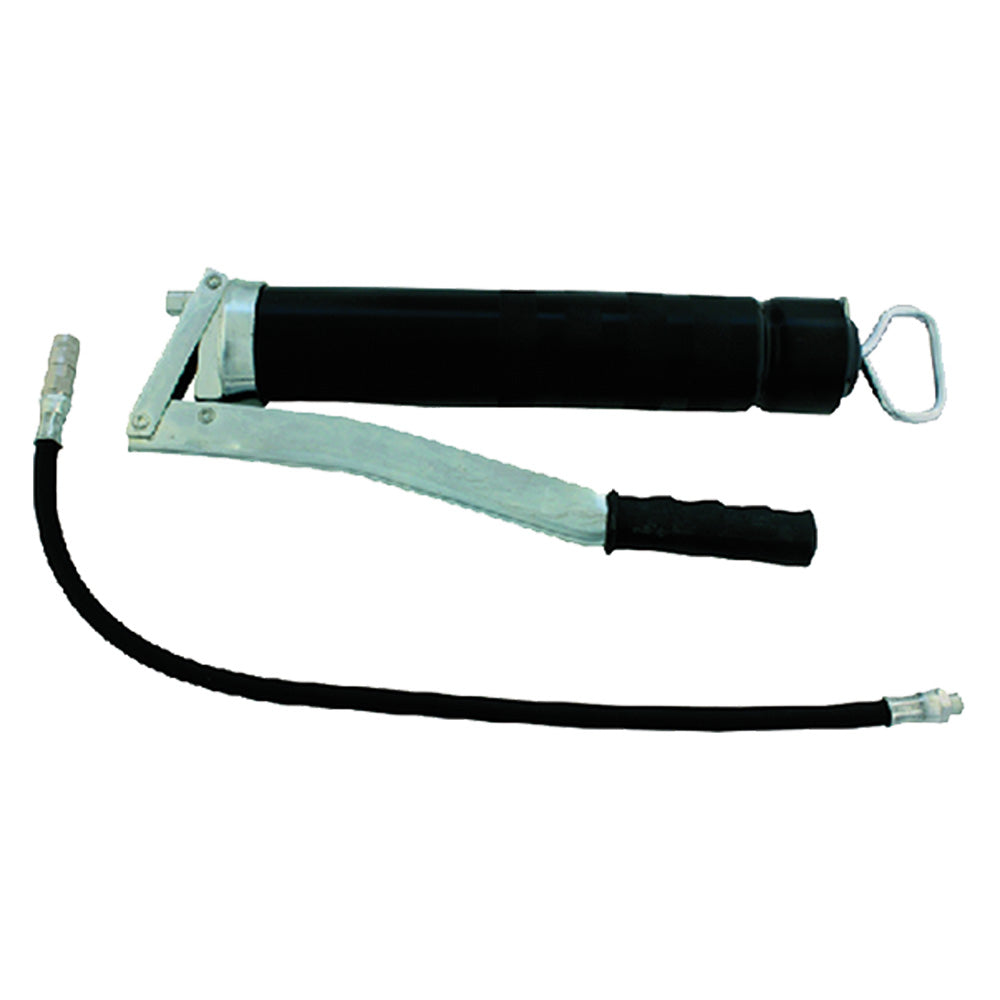 Con leva ad avanzamento automatico del grasso, caricamento tramite cartuccia o grasso sfuso. Completa di flessibile rinforzato a testina idraulica.